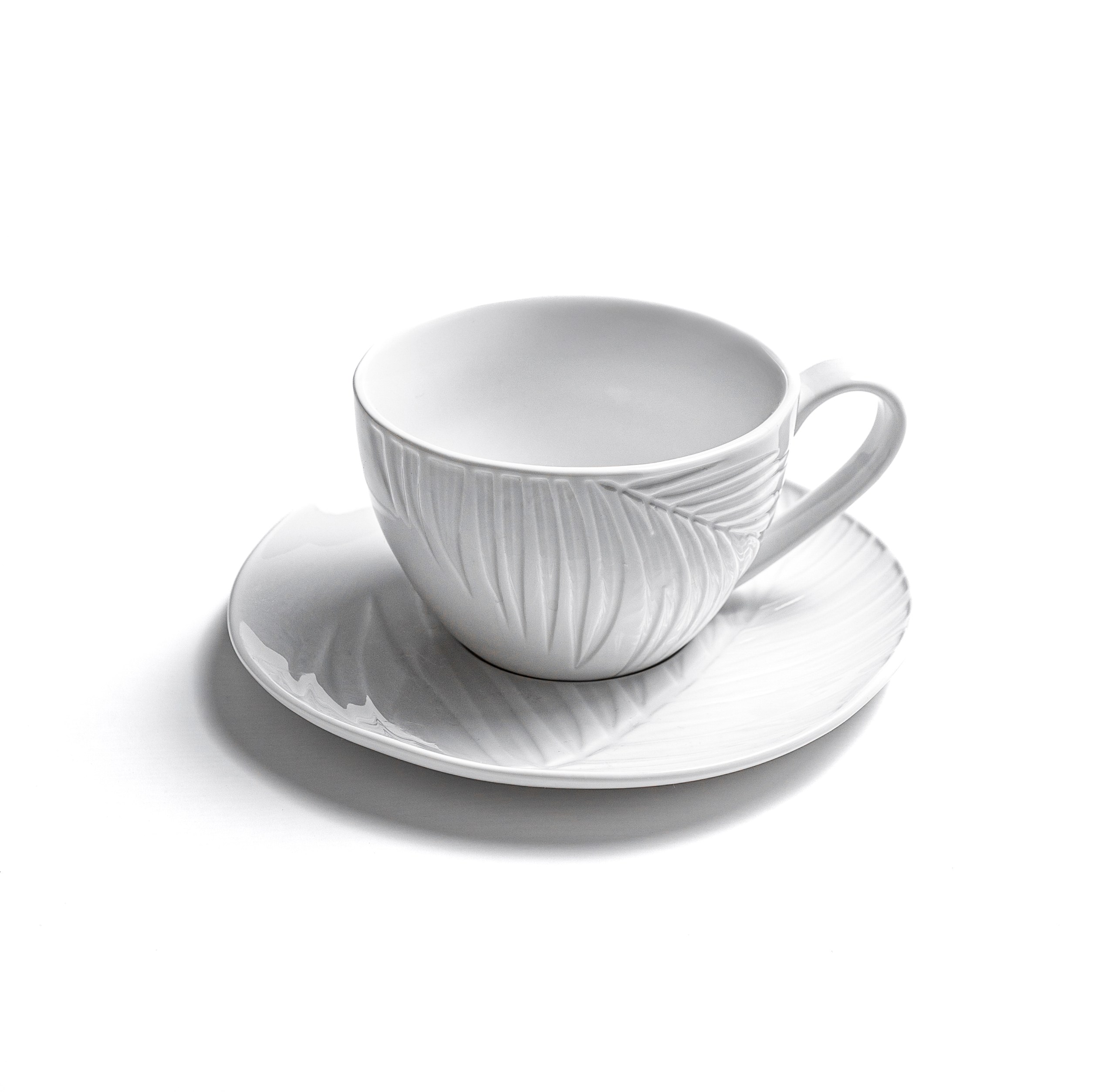 Фарфоровая чайная пара коллекции BALI белоснежного оттенка придаст чаепитию экзотики и напомнит вам об отпуске в тропических странах, а еще максимально долго сохранит температуру напитка.