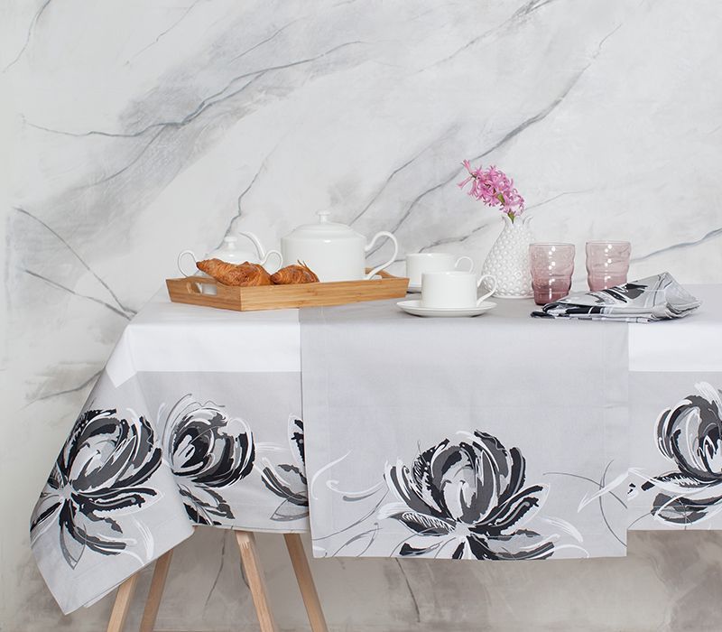Обойная коллекция VENERA стала одной из изюминок нашего ассортимента. Воздушные абстрактные цветы органично вплелись в многогранную структуру фона. Конечно, мы не могли оставить в стороне столь популярный дизайн и переложили его на столовый текстиль, но в абсолютно другом прочтении.